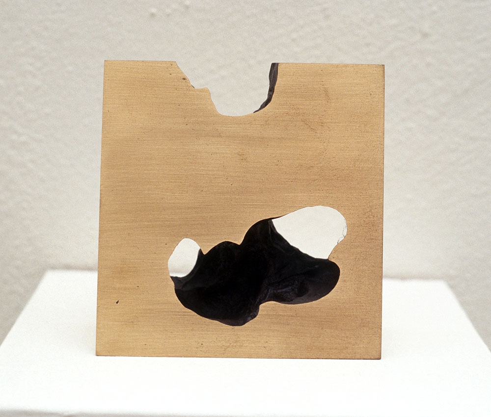 Title: Missing Cube (Bronze) , ミッシングキュ-ブ 、習作 Date: 1993 Size: 10x10x10.7cm(LxHxW) Weight: 6kg Material: Bronze / ブロンズ