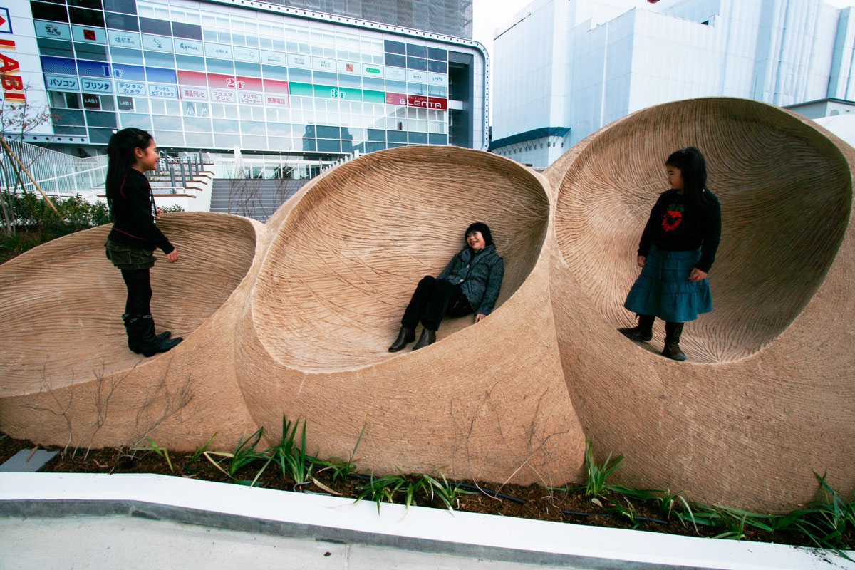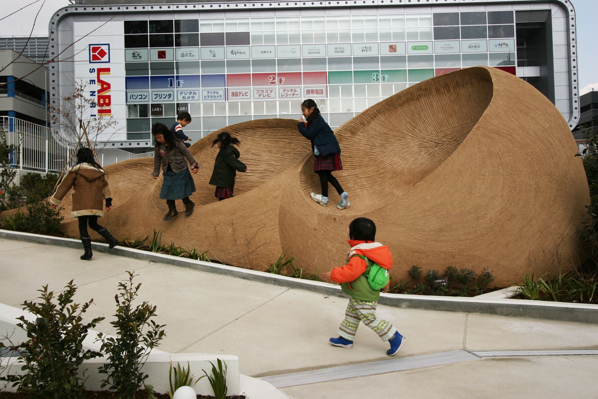 大地は動き 生命は巡る 時もあらゆるものも 止まらない 螺旋の動きのように つづいていく それはまるで縄のよう 環境芸術 / 彫刻家 八木マリヨ 2008年 2月 竣工
