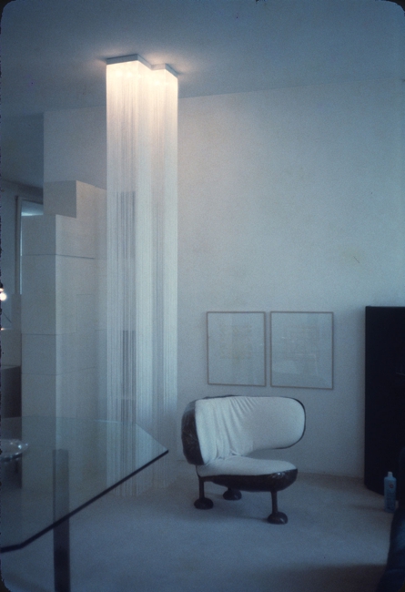 マルセルブロイラー、マンレイ、マルセル•デュシャンらのデザインをプロデュースしたディーノ•ガビーナが率いるシモン•インターナショナル社は当時、機能をもつアートとしてポエテイカ•モビレ=詩的家具を展開していた。その一つにインテリア空間を演出する「光る糸カーテンGARBO照明」が加わり、正方形、長方形、曲線、三角形のデザインシリーズにして世界に発売された。