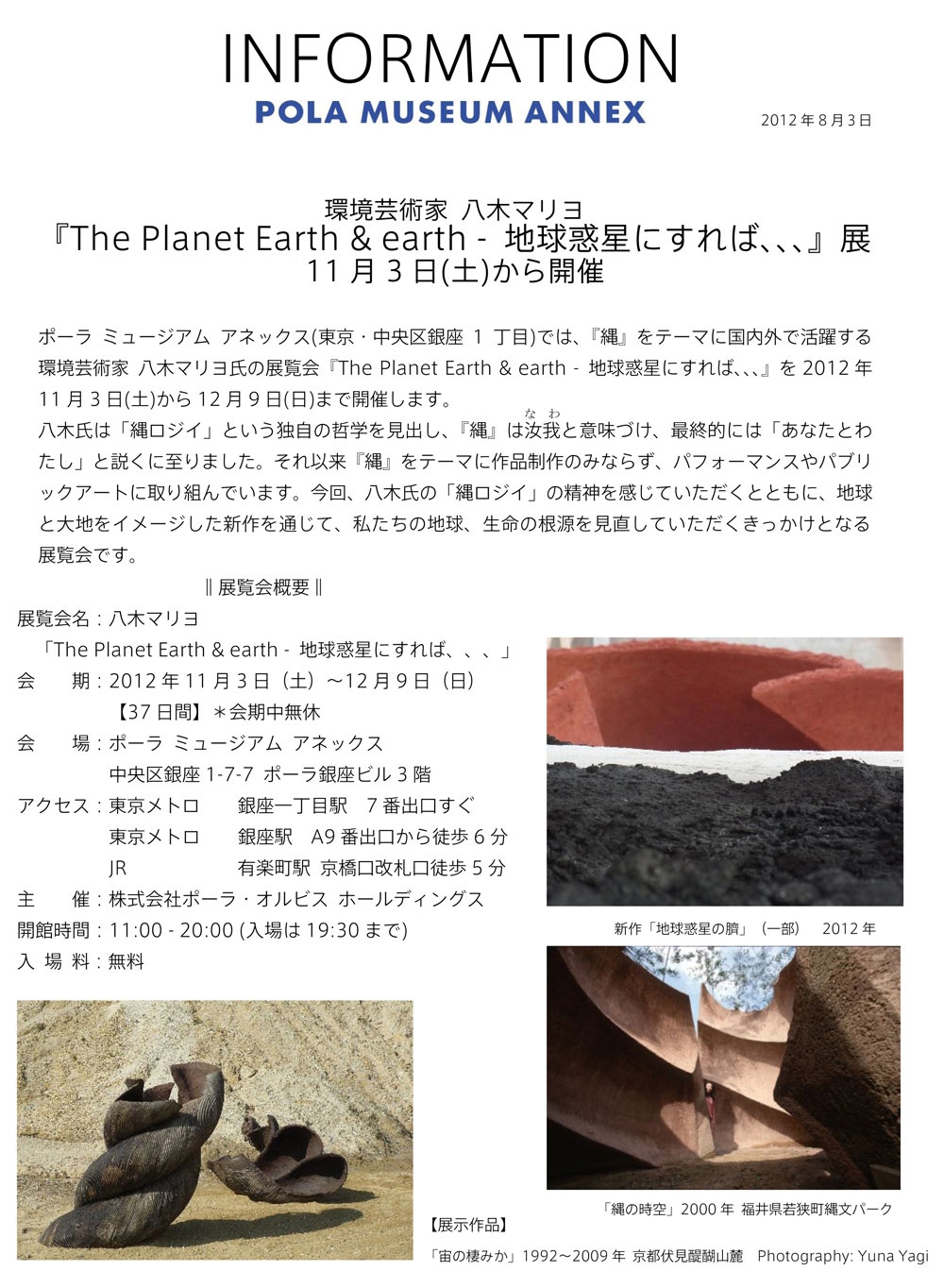 ポーラミュージアム アネックス EARTH & earth 2012年 11月03日(土)~12月09日(日)