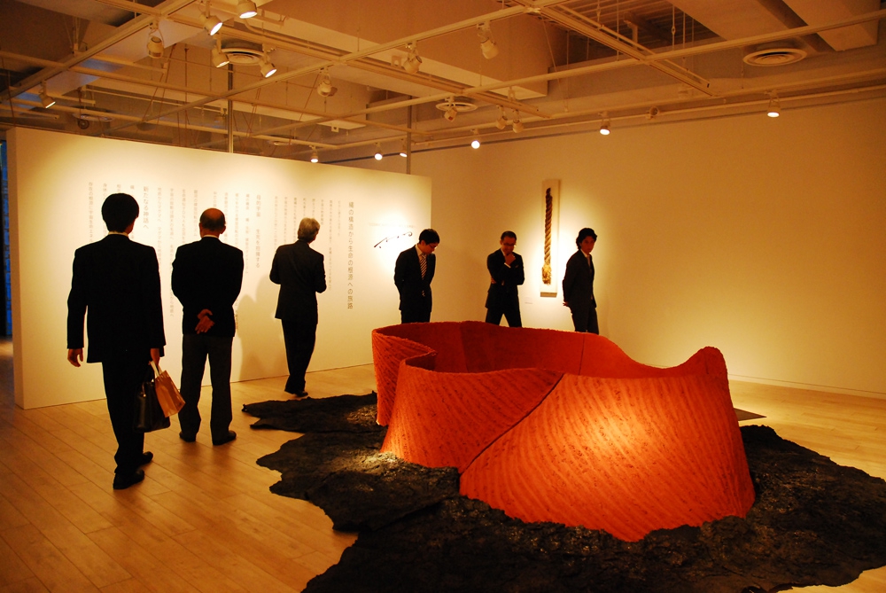 「地殻を辿る」は、2人の作品の相乗によって、大いなるエネルギーの生まれるコスモロジーの空間を都市の中に創出する展覧会である。
