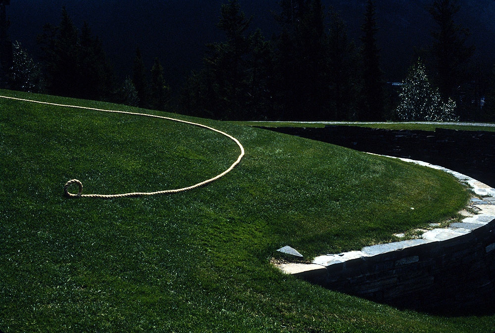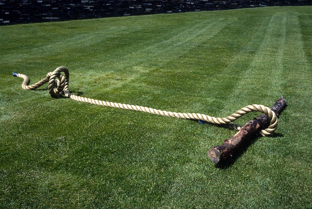 タイトル : ナワインスタレーション 場所 : バンフアートセンター、カナダ 制作年 : 1986年 材料 : サイザルロープ、丸太